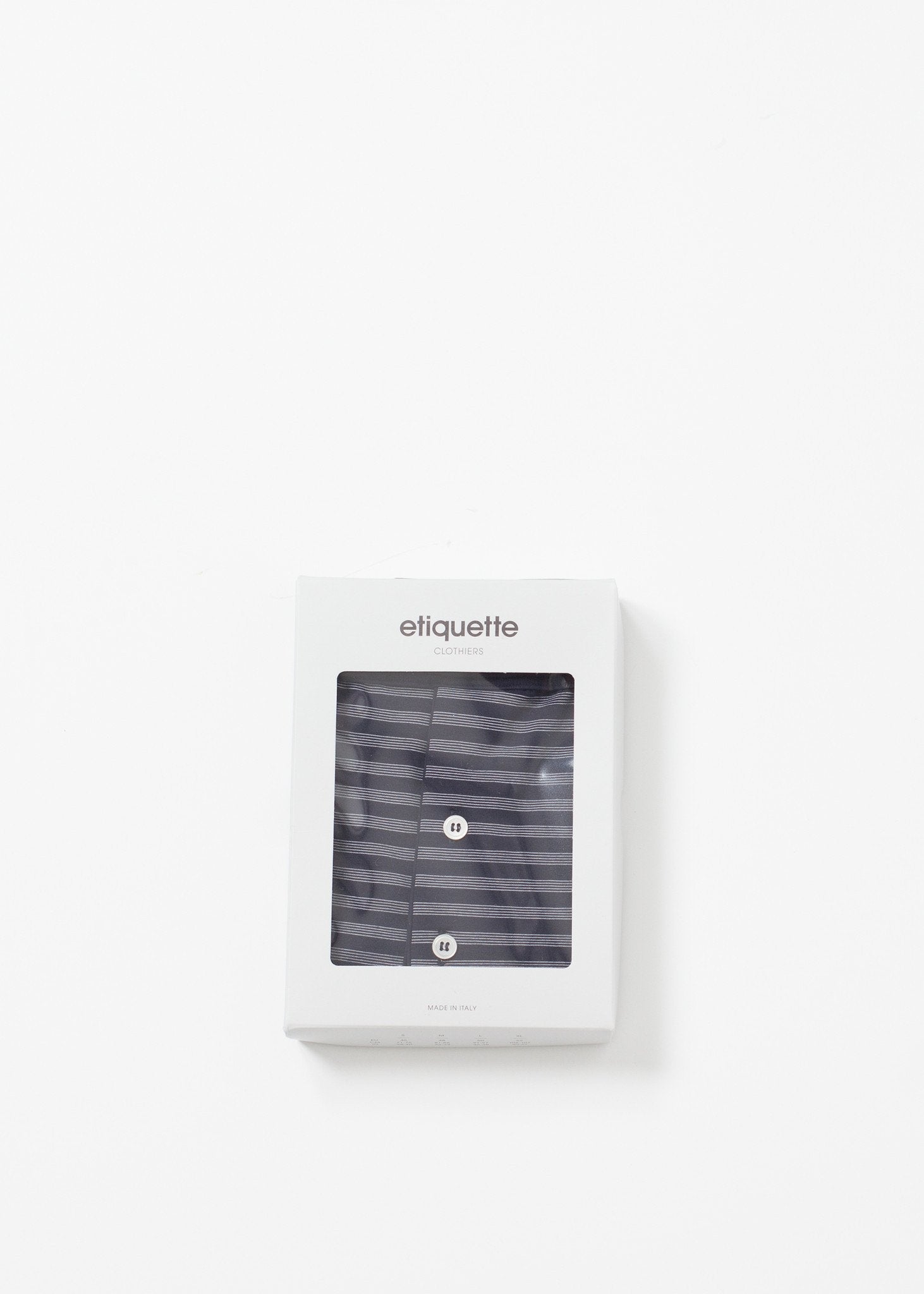 This prewashed cotton trunk is composed of the finest gauge for the softest materials. Offers stretch and softness in wear. Elastic waistband for ease. Etiquette. Color Navy/Grey. 95% Cotton, 5% Elastane. Made in Italy.