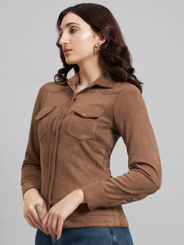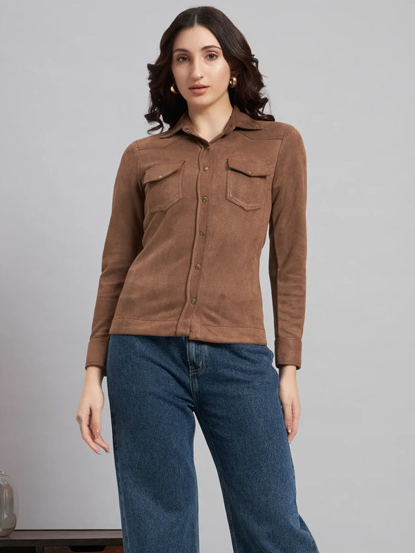 Suede & Sleek Brown Shirt
