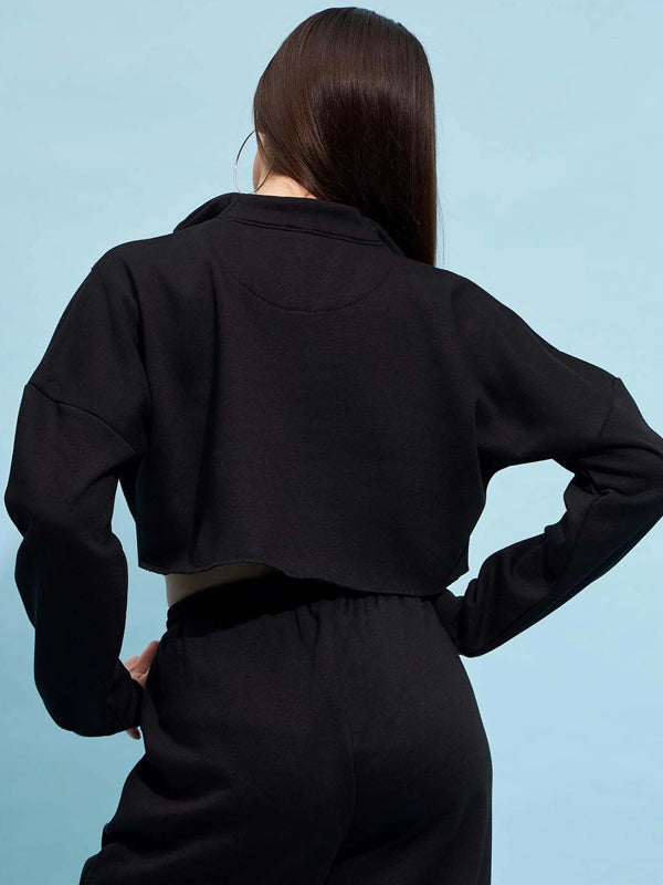 Black Mock Collar Pure Cotton Crop Sweatshirt