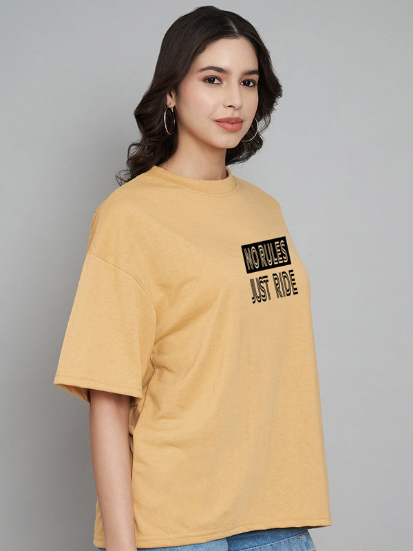 Women Typography Crew Neck Cotton Blend Yellow T-Shirt